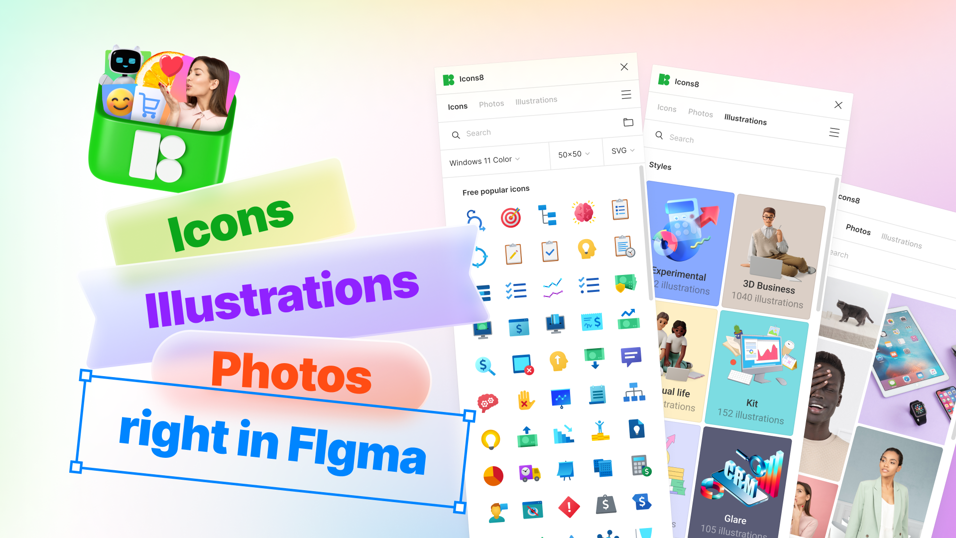 Similar to Iconify, Icons8 is a Figma plugin that also provides direct access to thousands of icons. However, in addition to icons, this plugin also provides illustrations and photos, which are license-free from the Icons8 platform. All these assets can be used to enhance the interface design without having to leave Figma.