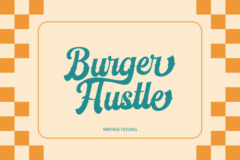 Vintage Feeling is the visual aspect that creates a warm and inviting retro vibe in a design. This font serves as typography and provides an excellent visual experience, ensuring that the burger branding identity stands out. The solid form and rhythm of the letters provide an artistic appearance, particularly with the decorative look in the middle of the letter. When using retro script fonts in burger stall branding, consider how to create great visual storytelling that appeals visually and emotionally, and Vintage Feeling can help you do just that.