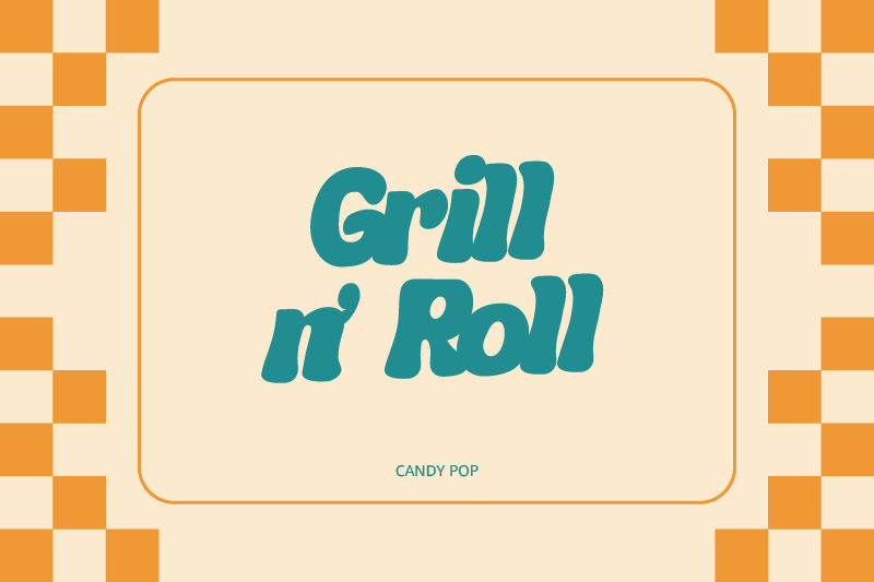 As one of the most popular retro script fonts, this style stands out for its pleasant and nostalgic atmosphere, which perfectly represents old pop culture. Candy Pop is ideal for headlines, logos, and burger stall branding that demand a strong visual appeal without losing message clarity.