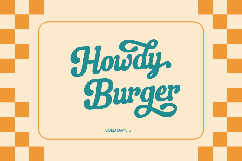 Cold Daylight is an effective font for building a friendly, energetic, and classy visual identity. The rhythm of the letters is dynamic, strengthening the visual appeal and making it ideal for burger stall branding.