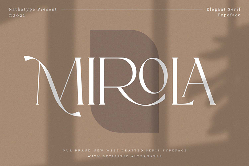 Having an outstanding visual balance and great readability makes Mirola a modern serif font that exudes gracefulness without looking too excessive. It appears beautiful, striking, and full of character, highlighting the simplicity without jeopardizing the elegance of the font. Mirola is ideal for use in websites, social media branding, Pinterest banners, print invitations, and more. The stylistic sets are stunning, as seen in the letters “M” and “R,” evoking an artistic, elegant, and classy feeling.