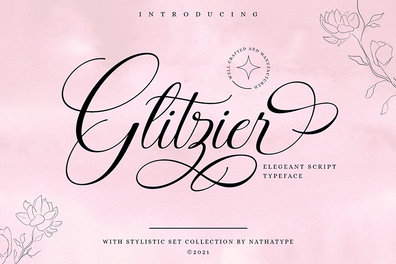 If you’re looking for a modern wedding font with a creative touch, then Glitzier is the perfect font choice. That is because this font combines contemporary style with some delightful curves. This script font has an italic appearance, adding an extra touch of elegance.