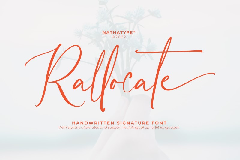 Lastly, we have Rallocate, a handwritten signature font with an interesting contrast. Each letter looks neat and elegant, suitable for use in headers or small text on wedding invitations.