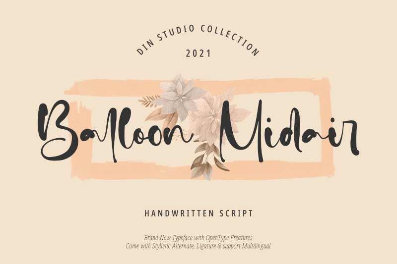 Next, we have Balloon Midair, a handwritten script font with playful and expressive characters. The letters have free-flowing strokes, with thickness variation that looks like they were written by hand using a brush or pen. These traits provide a personal and expressive impression for the font. The variation in baseline height adds a distinctive dynamic feel to each letter. Rounded, inflated shapes combined with the soft curves characteristic of Balloon Midair create a pleasant, casual, yet still elegant impression. This font is suitable for creative designs such as invitations, packaging, quotes, branding, and promotions.