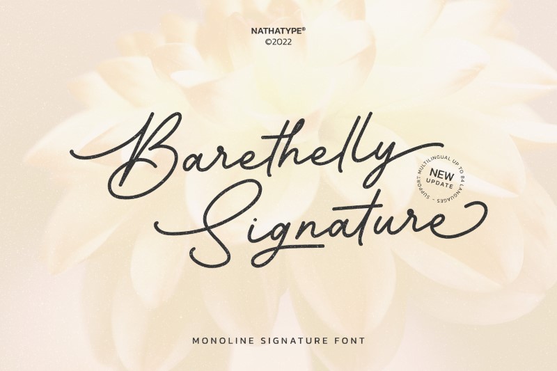 Inspired by human signature, Barethelly Signature exudes a vibe that most of the natural handwritten fonts here have: a clean, elegant, and confident look. With smooth monolines, this font boosts an impression of modernity and personal touch that is perfect for various designs like social media posts, invites, stickers, posters, and more. Barethelly Signature features stylistic sets, ligatures, and swashes that can make any brand easily recognizable globally.