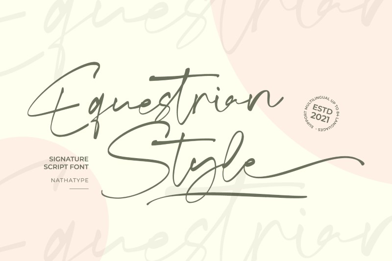 Equestrian Style is a signature script font that brings an elegant, modern, and stylish touch. The letterforms resemble a signature with fine lines, beautiful curves, and variations of ligatures and swashes that allow each word to appear unique and expressive. With a professional, elegant, and characterful appearance, this font is perfect for use in logos, book covers, and advertising materials that want to stand out.