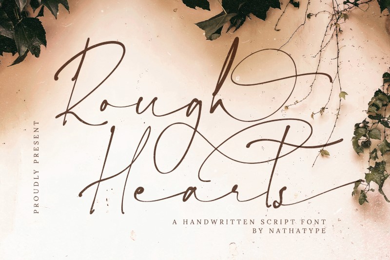 Rough Hearts is a natural handwritten font in a script style with rough-textured letter characters, resembling brush strokes, and featuring stunning and artistic letter variations. Each letter features swinging styles and prominent letter height, creating a personal and creative impression. In addition, with its elegant and dynamic letter flow, as well as features like alternates, ligatures, and stylistic sets, Rough Hearts is perfect for branding, headings, and more.
